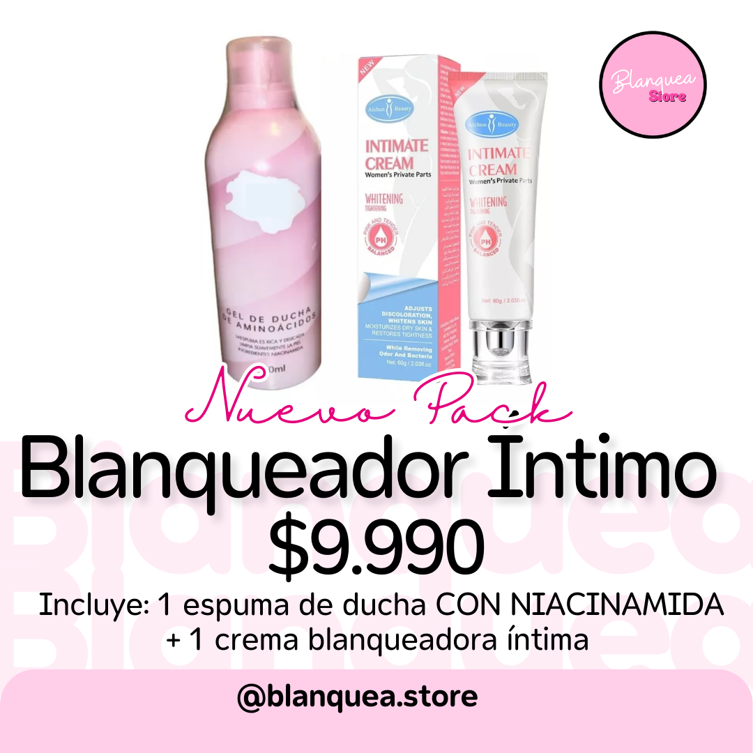 La espuma con aminoácidos y NIACINAMIDA, actúa mejorando la apariencia de la piel, contiene ingredientes que pueden ayudar a reducir la producción de melanina, lo que disminuye la pigmentación oscura en la piel. La crema blanqueadora con EXTRACTO DE FRUTAS ayuda a aclarar la zona v y axilas, ayuda a aclarar, refinar, reparar poros rugosos, hidratar, y suavizar.